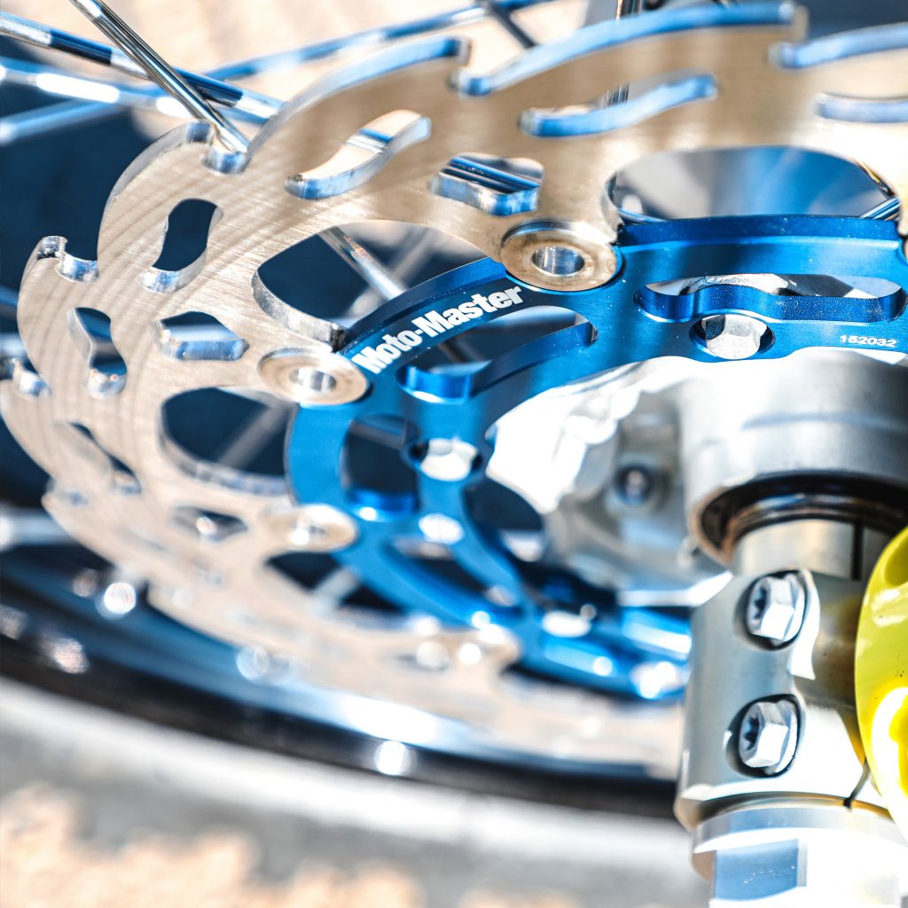 When racing cross-country at high speeds while carrying the additional weight of extra fuel and navigation equipment, you need double the amount of stopping power over a standard MX setup. Enter the Moto-Master Flame Rally disc.
