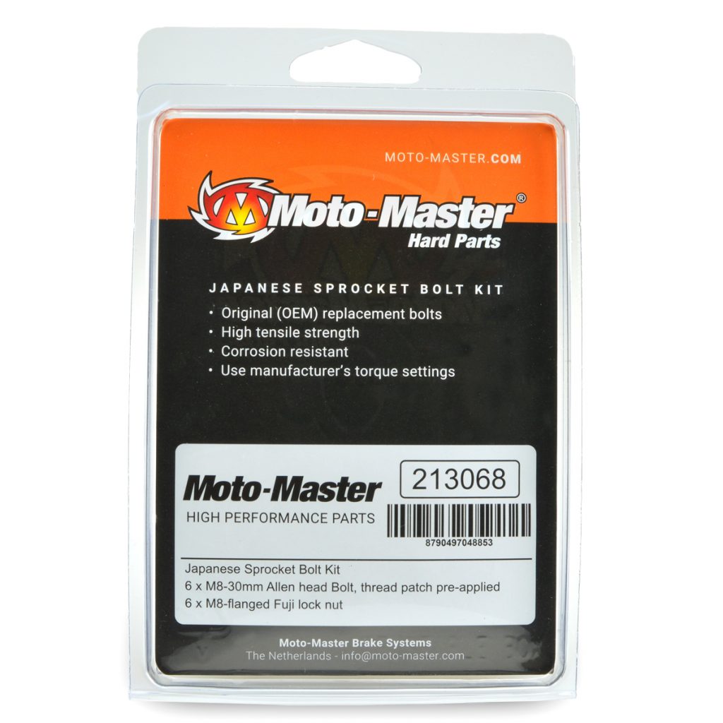 Sprocket Bolts (JAPANESE) High quality original (OEM) replacement sprocket bolt kit for Japanese motorcycles. Included: 6x M8-30mm Allen head bolt (thread patch pre-applied). 6x M8 flanged Fuji lock nut High-tensile strength. Corrosion resistant. Remember to use manufacturer’s torque settings. Product gallery Chains