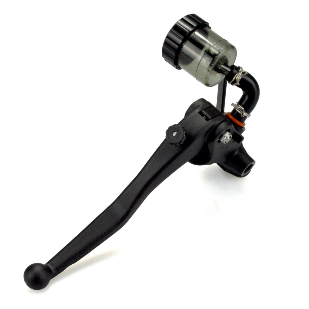 - Updated remote brake fluid reservoir prevents air ingress.