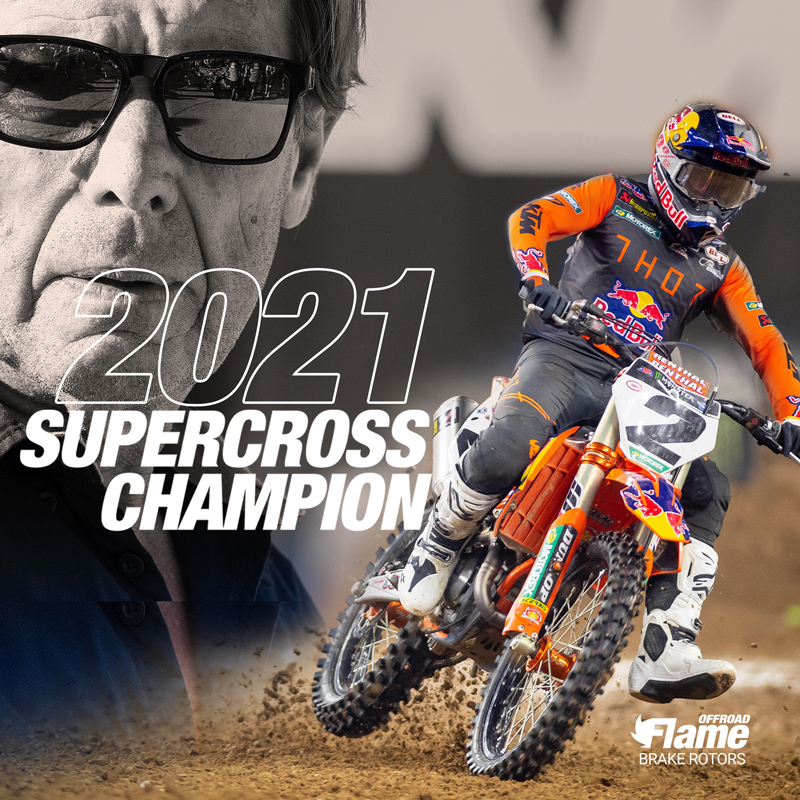 Cooper Webb is the 2021 Supercross Champion. Get ‘More Control’ like Cooper by choosing Moto-Master Brake Systems Flame Brake Rotors! #MotoMaster #StoppingTheWorldsFastest #supercross | ? Align Media