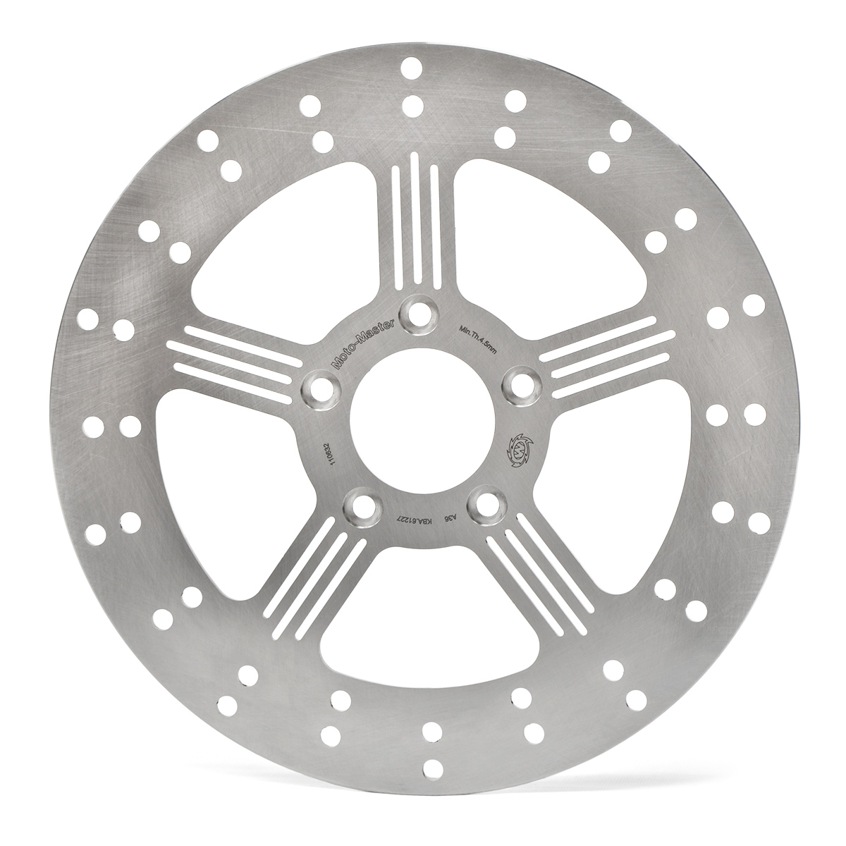 The Moto-Master Custom Harley discs are developed to perform under heavy loads and in combination with today’s powerful Harley aftermarket brake calipers. The Adrian is a fixed design rotor made of premium stainless steel.