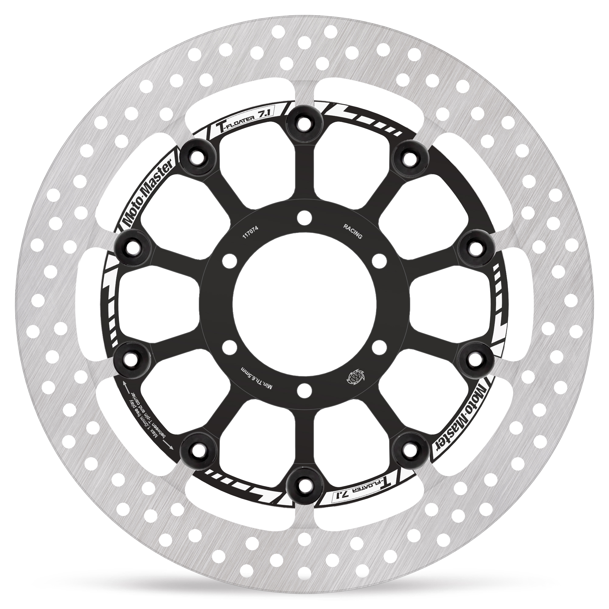 Moto-Master HALO T-Floater Racing Discs with T-Floater system – This is the Ultimate Racing Discs for the serious professional rider. Now available in 6mm thickness (⌀320 and ⌀330mm) and WSBK thickness 7.1mm (⌀320mm). Not for Public Road use.